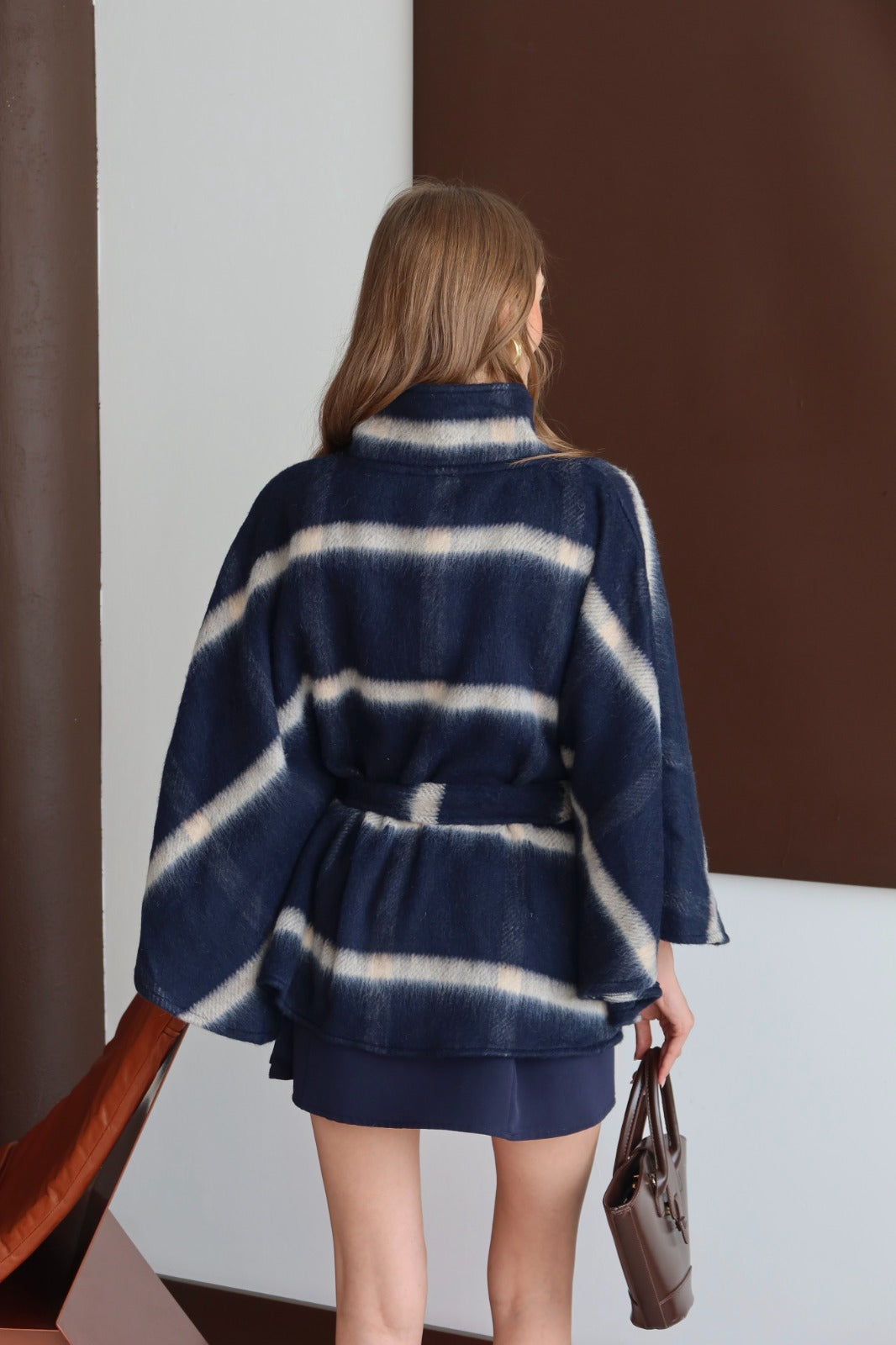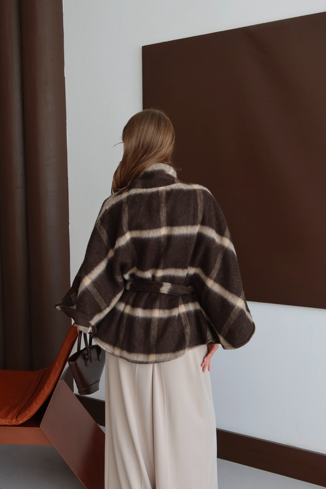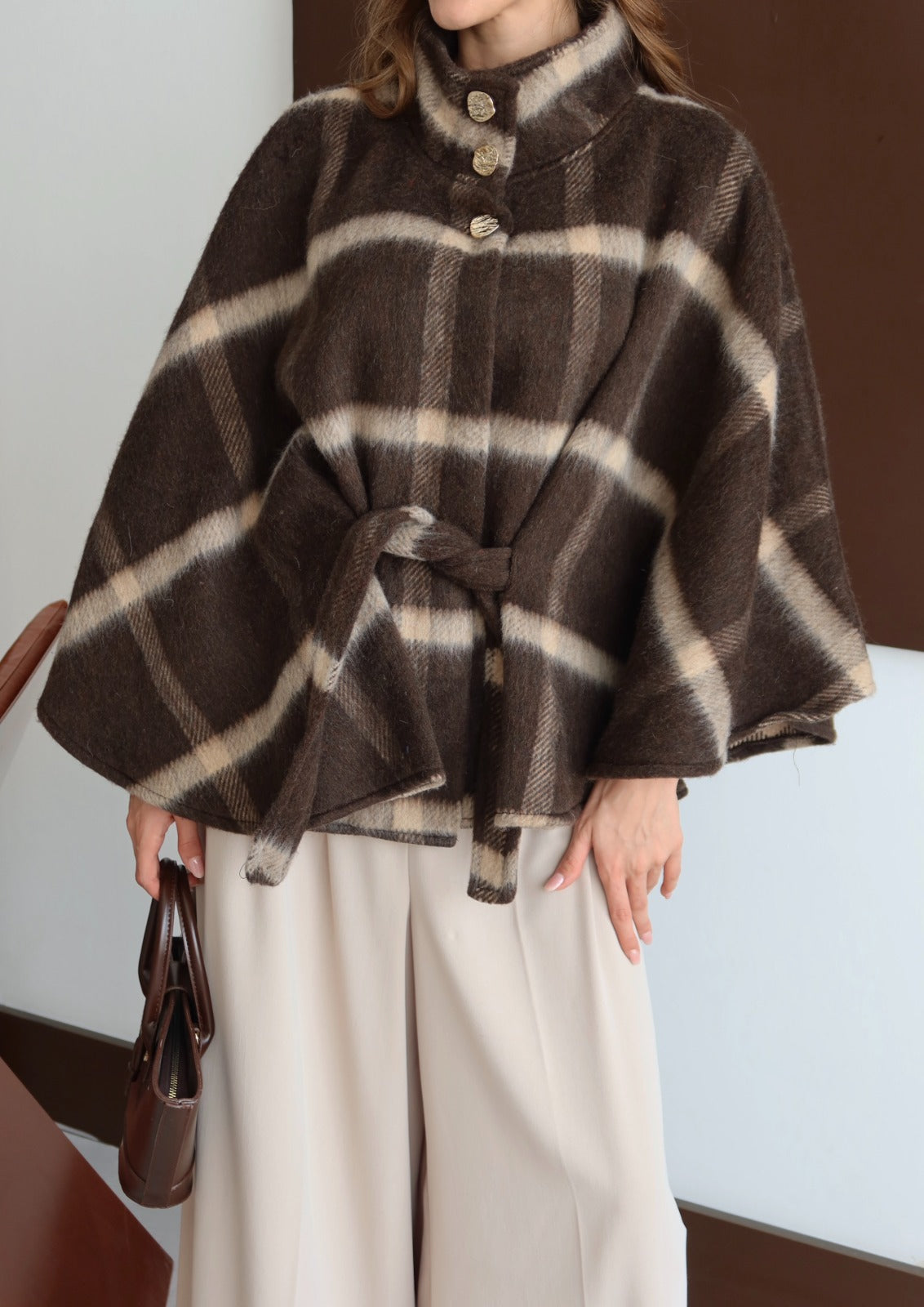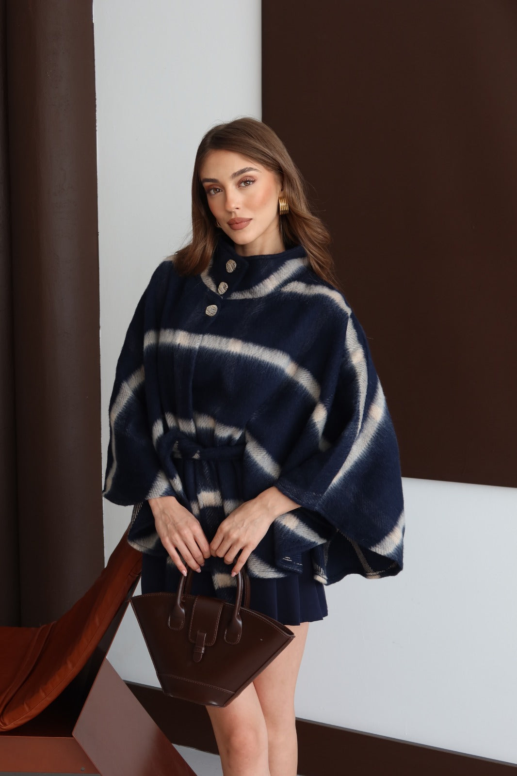 AEC PRIVE kadın gold düğmeli pöti kareli panço, tam da bu zamansız şıklığın vücut bulmuş hâli.