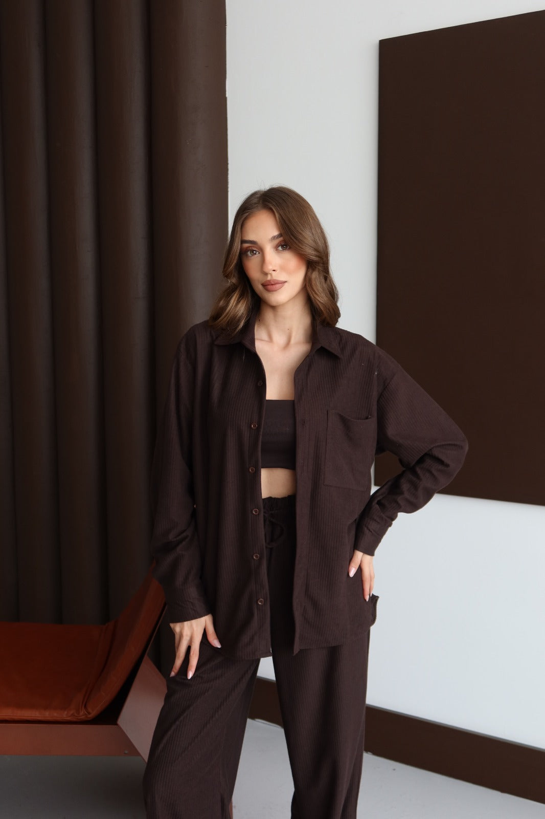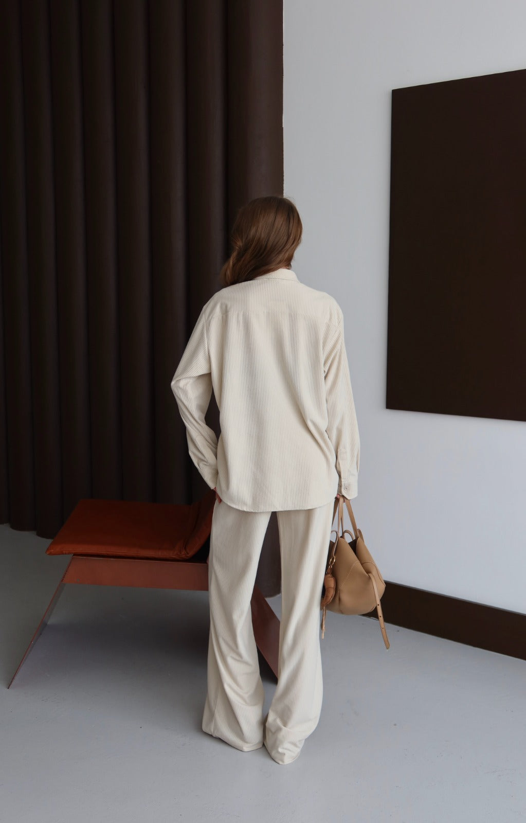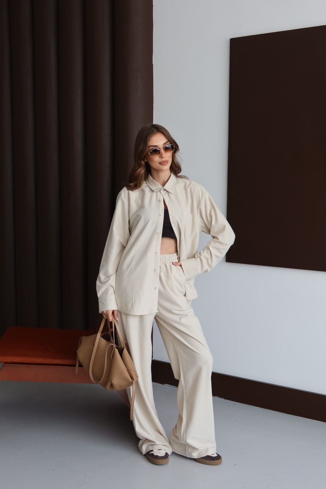 Gömlek ve pantolon tasarımı, minimal ama güçlü bir stil anlayışıyla her anına uyum sağlar.