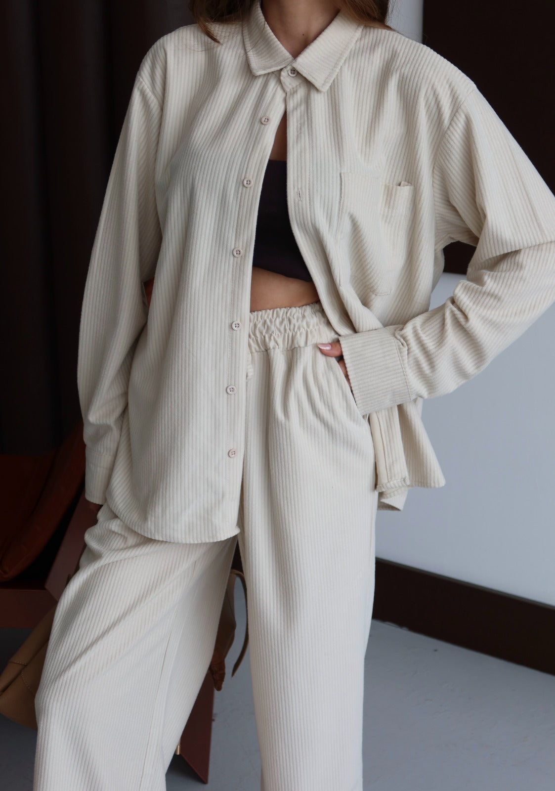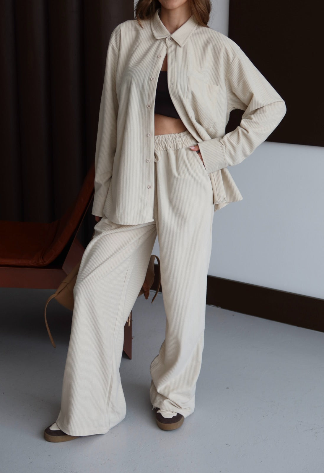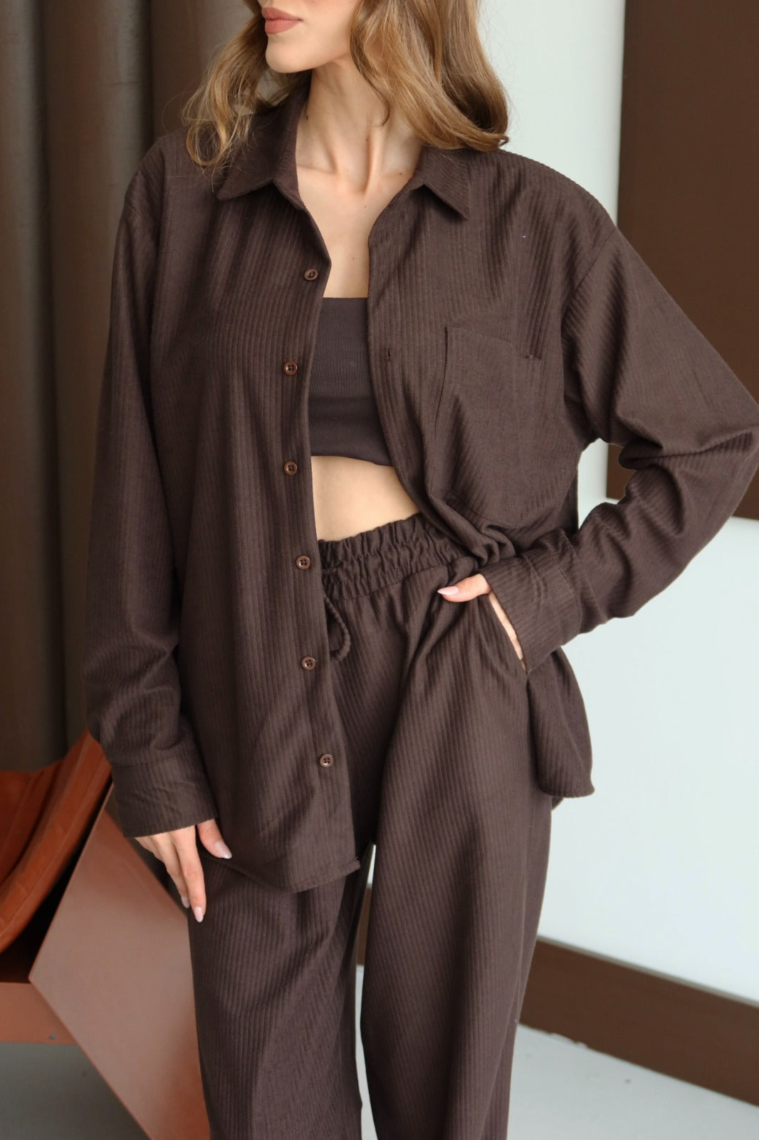 Gömlek ve pantolon tasarımı, minimal ama güçlü bir stil anlayışıyla her anına uyum sağlar.