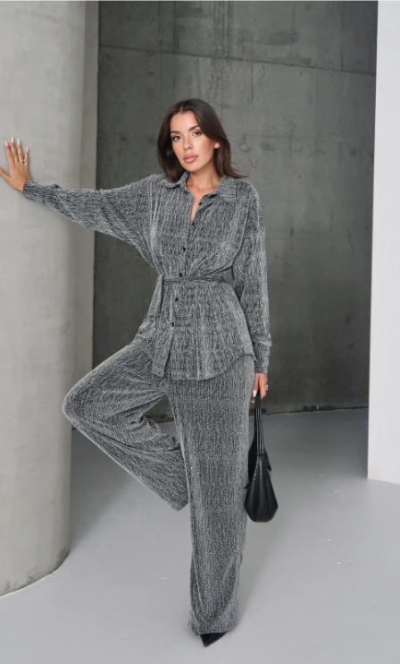 Taşlı kadın gömlek pantolon takım, gece davetlerinde ya da özel günlerde mükemmel bir tercih. Bu takım, hem günlük kullanıma uygun hem de şık bir akşam yemeği için ideal. Pantolonun rahat kesimi, hareketlerinizi kısıtlamadan özgürce hareket etmenizi sağlar ve üstteki gömlek, zarif detayları ile çok yönlü bir kullanım sunar.