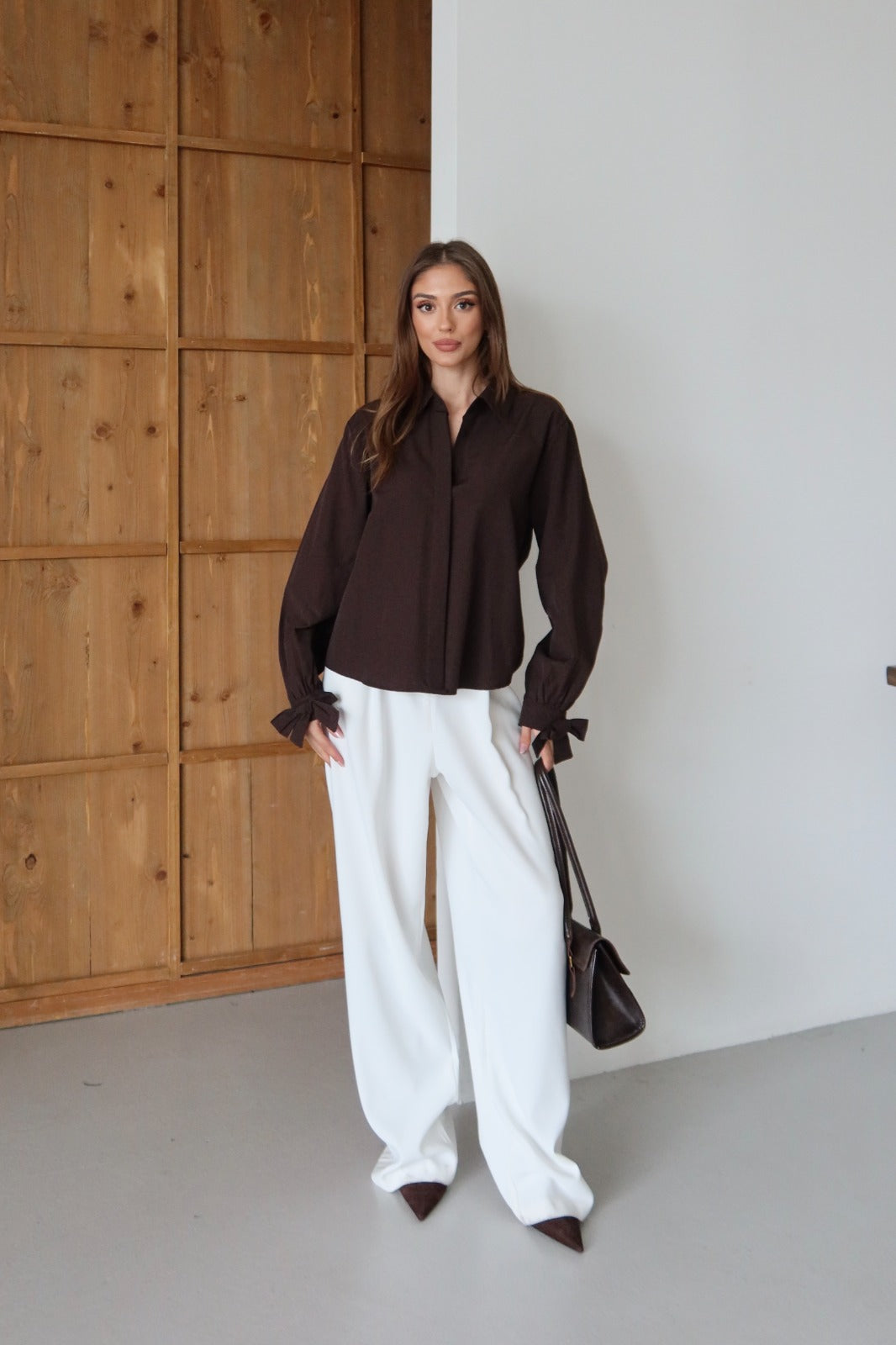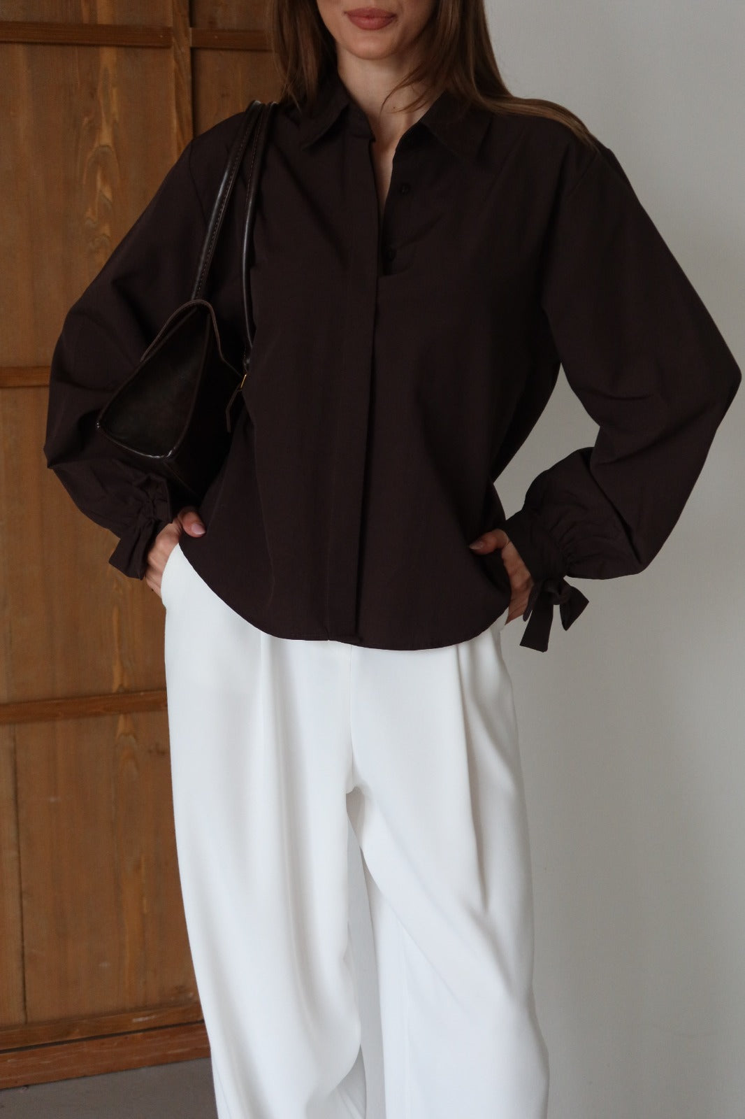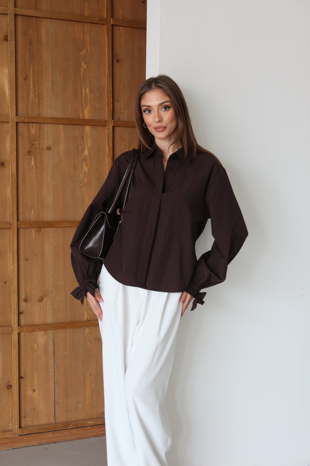Hem ofis kombinlerinde hem de şehir şıklığında modern bir duruş sergileyen bu gömlek, sadeliğin gücünü zarafetle birleştiriyor.