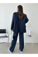 Zarif çizgili tasarımı, her kadının dolabında yer alması gereken bir parça. Blazer ceket, modern bir siluete sahipken, geniş pantolonlar gün boyu rahat hissetmenizi sağlar. Bu kombin, hem ofiste hem de sosyal ortamlarda göz alıcı görünmenizi sağlar.