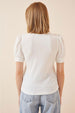 Kadın beyaz kare yaka bluz, şıklığı ve konforu bir arada sunar. Bu bluz, özel dokusu ve tasarımı sayesinde gardırobunuzda vazgeçilmez bir parça olacak. Özel günlerde ya da günlük hayatta rahatlıkla tercih edebilirsiniz. Balon kol detayları, bu bluzu hemen fark edilebilir kılar.