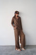 Bu kadın gömlek pantolon takım, hafif ve nefes alabilen kumaşıyla yaz aylarında bile konfor sunar. Üst kısım, rahat bir kesime sahiptir. Pantolon ise bol kesimli tasarımı sayesinde hareket özgürlüğü sağlar. Üstelik, lastikli bel kısmı ile de gün boyu rahatlıkla giyebilirsiniz.