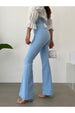 Kadın mavi ispanyol paça pantolon, şıklığı ve rahatlığı bir araya getirerek her kadının gardırobunda yer alması gereken bir parça. Bu pantolonlar, ekstra yüksek bel tasarımı ile belinizi ince gösterirken, stilinizi de dört dörtlük tamamlar.