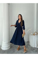 Elbisenin derin V yaka kesimi, boynunuzu zarif bir şekilde vurgular. Ayrıca, lastikli bel detayı, elbisenin vücut hatlarınızı güzel bir şekilde sarmasını sağlar. Bu tasarım, her bedenden kadının rahatlıkla giyebileceği bir seçenek sunar.