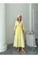 Elbisenin yumuşak muslin kumaşı, hafifliği ile sizi serin tutar. Uzun kesimi, zarif görünümünüzü ön plana çıkarır. Nakış detayları, elbisenin sade havasına hoş bir dokunuş katar. Kollarındaki şık nakışlar, elbisenin farklı ve göz alıcı olmasını sağlar.