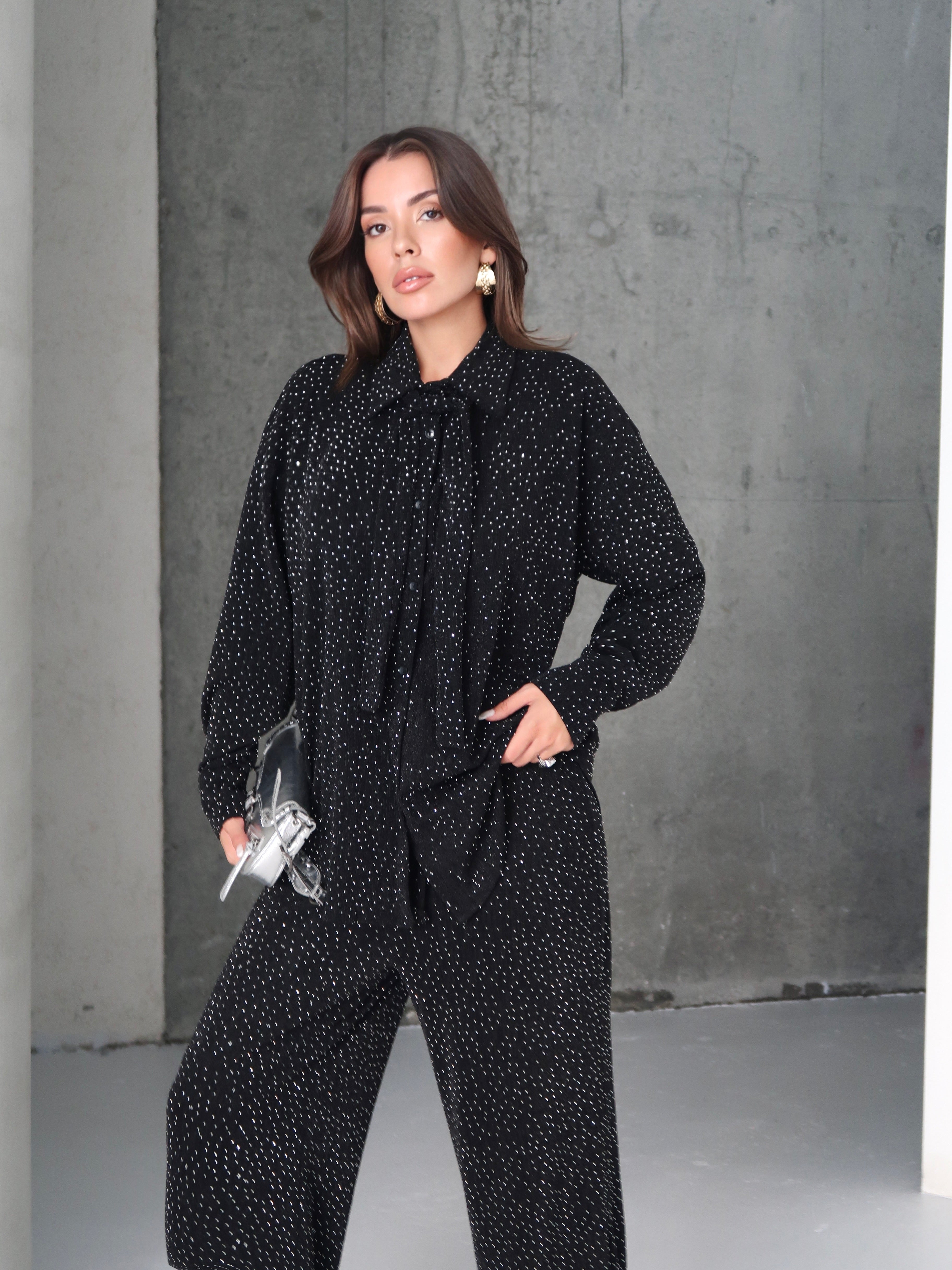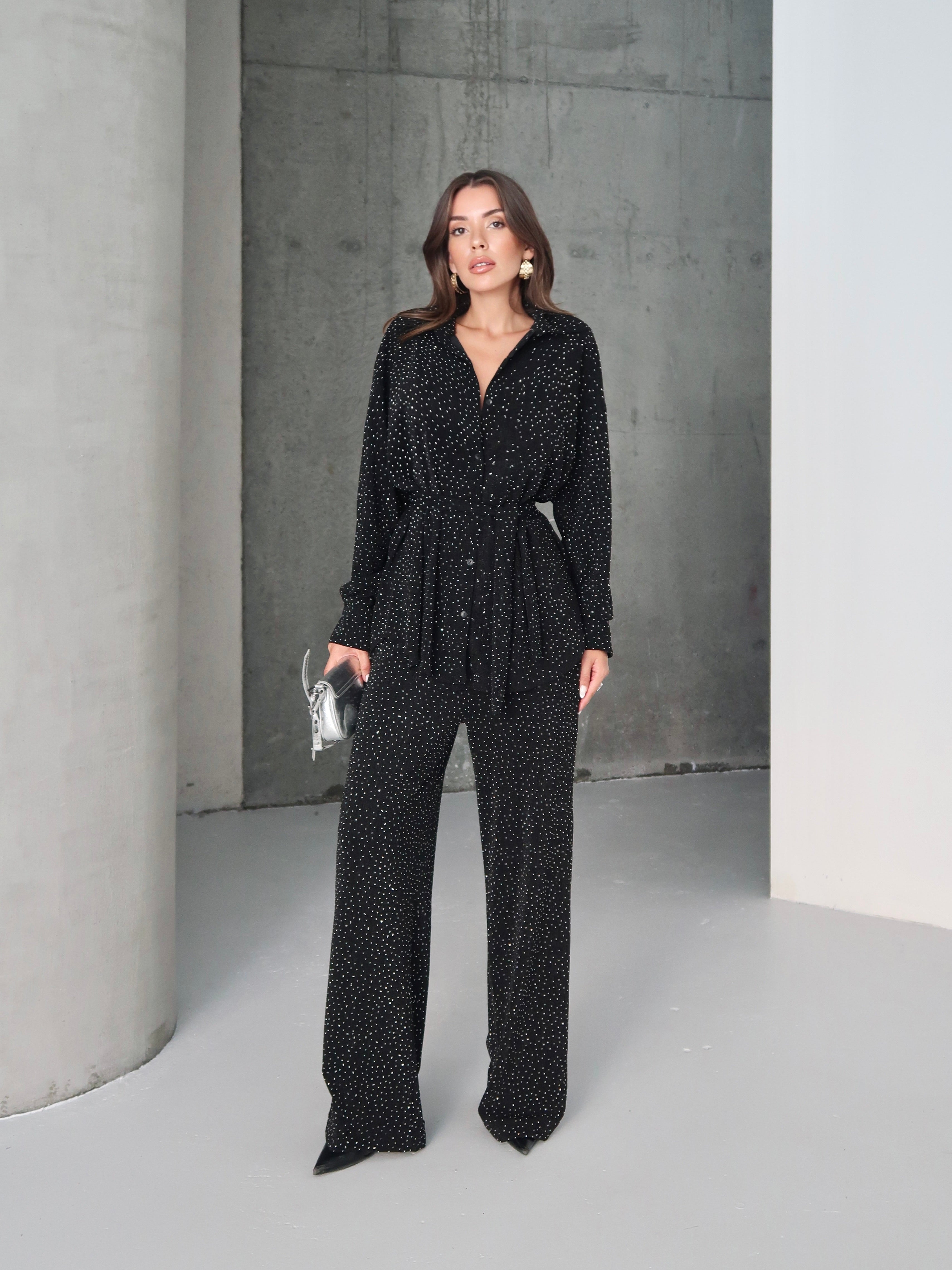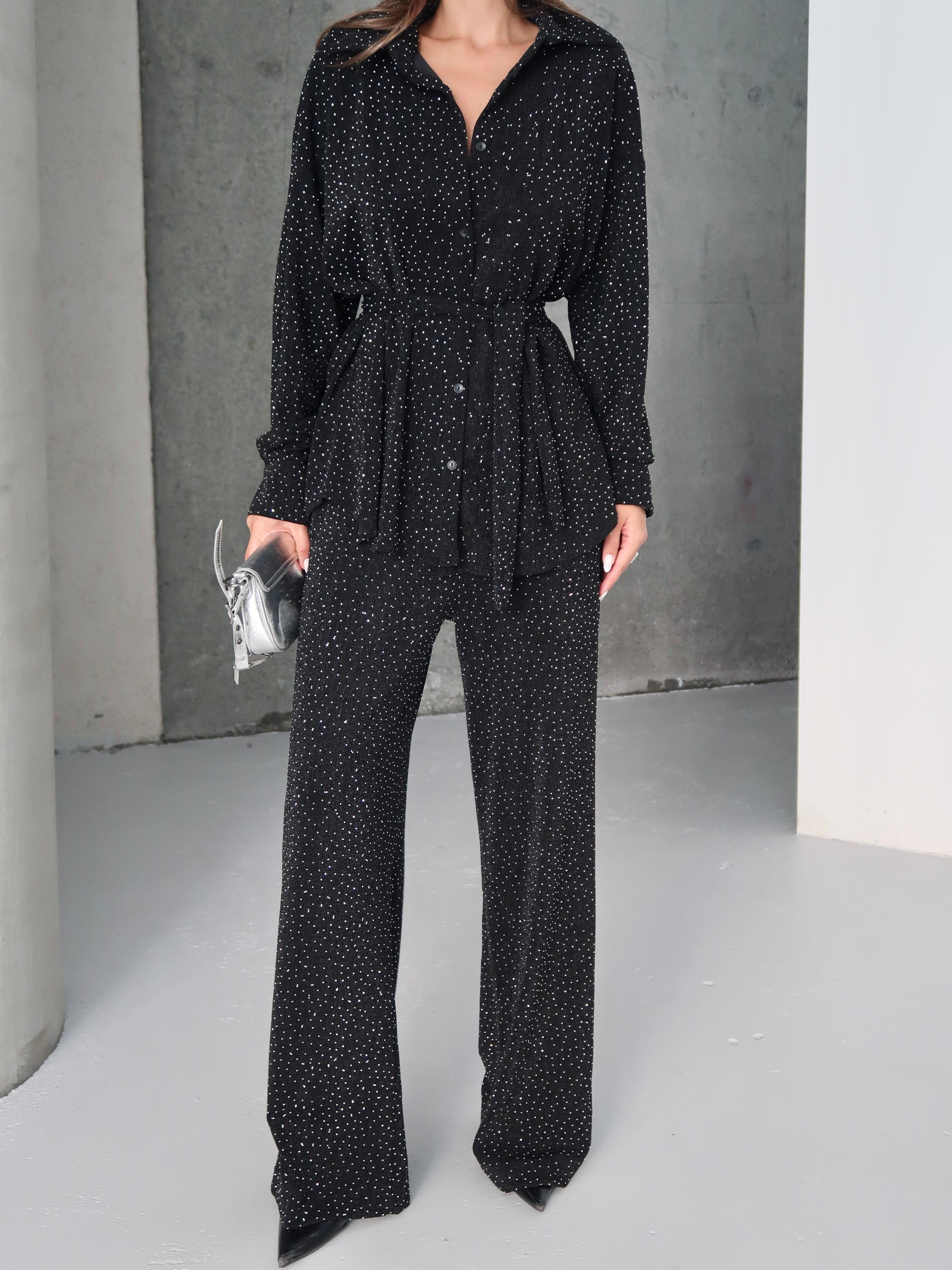 Farklı renk seçenekleriyle sunulan bu takım, kombin yapmayı da kolaylaştırıyor. Hem klasik hem de modern stillerle kolayca uyum sağlayabilir. Aec Prive'nin şal detaylı taşlı gömlek pantolon takımı, şıklığın ve rahatlığın buluşma noktası. Hayalinizdeki görünüm için doğru tercih.