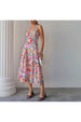 Ürün, vücut hatlarını zarif bir şekilde sarar. Arkadaki çapraz askılar, modern bir dokunuş ekler. Geniş etek kısmı, yürürken akışkanlık yaratarak size rahatlık sağlar. Renklerin canlılığı, elbisenin yaz havasını yansıtmasını sağlar.